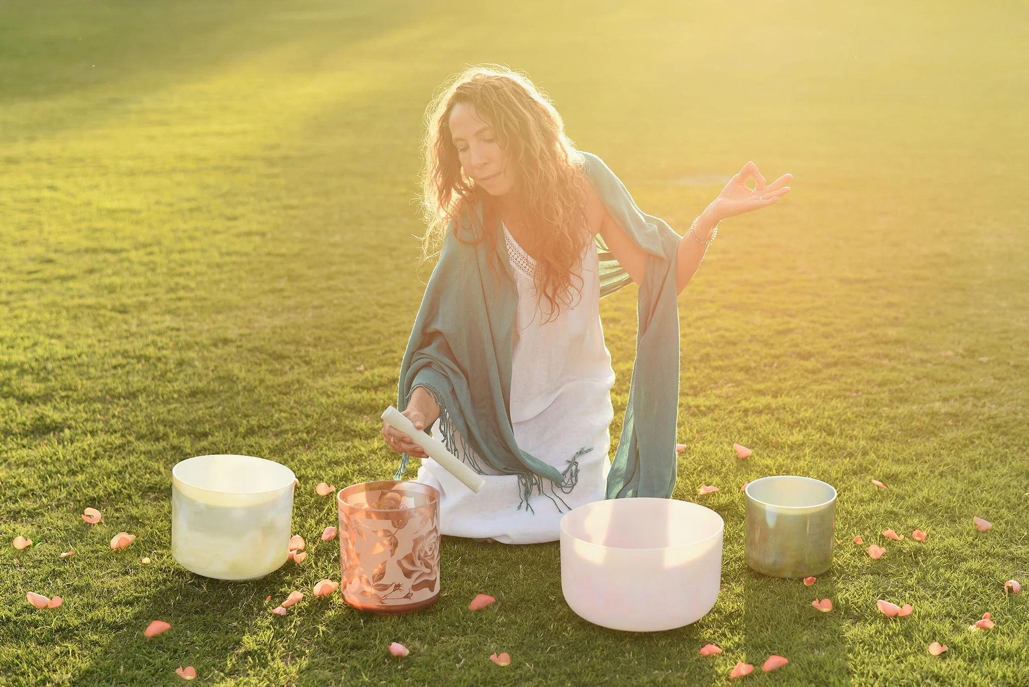 LoveLight language flows through Amala while she plays crystal singing Bowls. There is a guided meditative process as well. Soothe the nervous system, enter into a deep, meditative state, receive balanced, high frequency sound waves to support the body in entraining with peace. What is co-created is a conscious, dynamic, illuminated, Light grid space that Amala holds in order for others to access what their soul is asking for in a relaxing, beautiful, easy way.