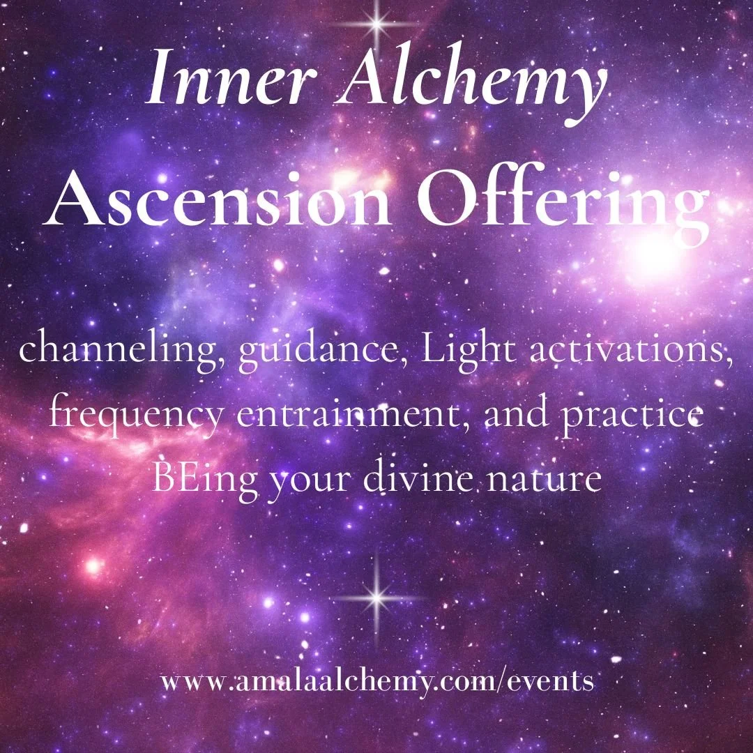These Inner Alchemy ascension offerings are ideal for those who are already aware of their multidimensionality and are open to guidance, frequencies, channeling, and Light activations from higher realms (and cosmic consciousnesses in order to re-member your own cosmic nature) regarding navigating and optimizing and expanding one’s inner knowing, which at some point becomes a way of being that is one with Inner Wisdom (which comes with experience). It is for those who are comfortable being with Light language, as that is in part how frequencies from higher realms are offered. You can also visit my Vimeo page to get a feel for the Light language and how I express, as all Light language is unique. If you’re new to conscious evolutionary expansion (ascension) principles and you’re curious, get in touch to communicate about what might be the most optimal group entry point. This is not a class. See the energetic boundaries masterclass for linear learning. This is not stated to keep people out. Simply so you have more of a sense of what to expect. You are more than welcome to join us. There are no refunds. If you have a question about this offering, inquire via email prior to registering. amalaalchemy@icloud.com